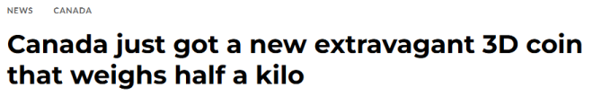 您可以在皇家铸币厂的网站上购买,但价格不菲,其重量足有半公斤。这枚硬币仅发行800枚,面值为125加元,但售价高达2099.95加元。